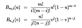 In this matrix form, the result is a column matrix of m+1 entries. If we further make the basis functions of the u-direction Bézier curve into a row matrix of m+1 entries: