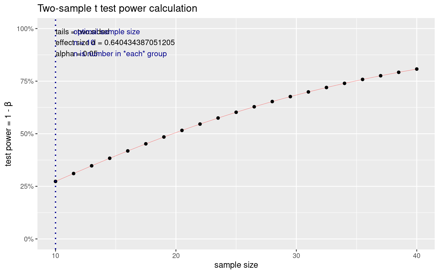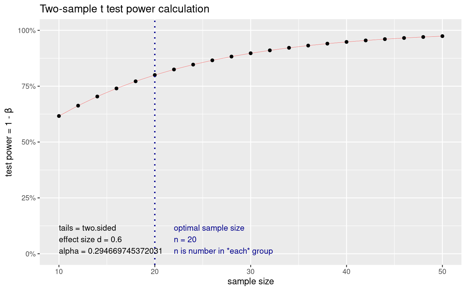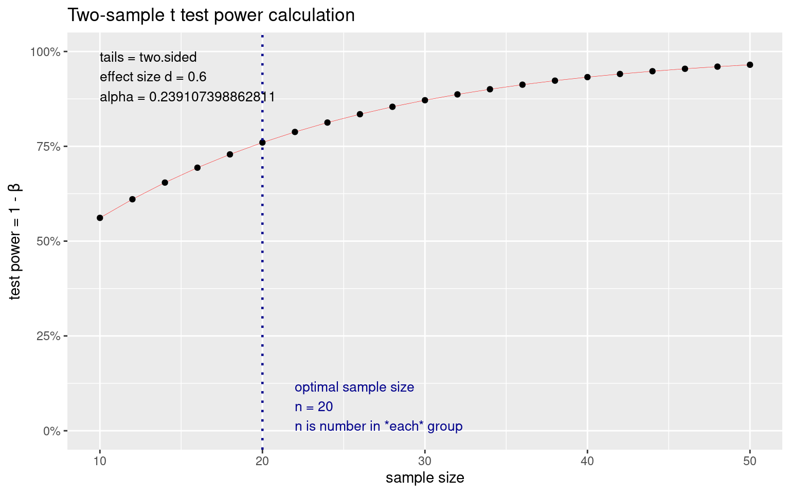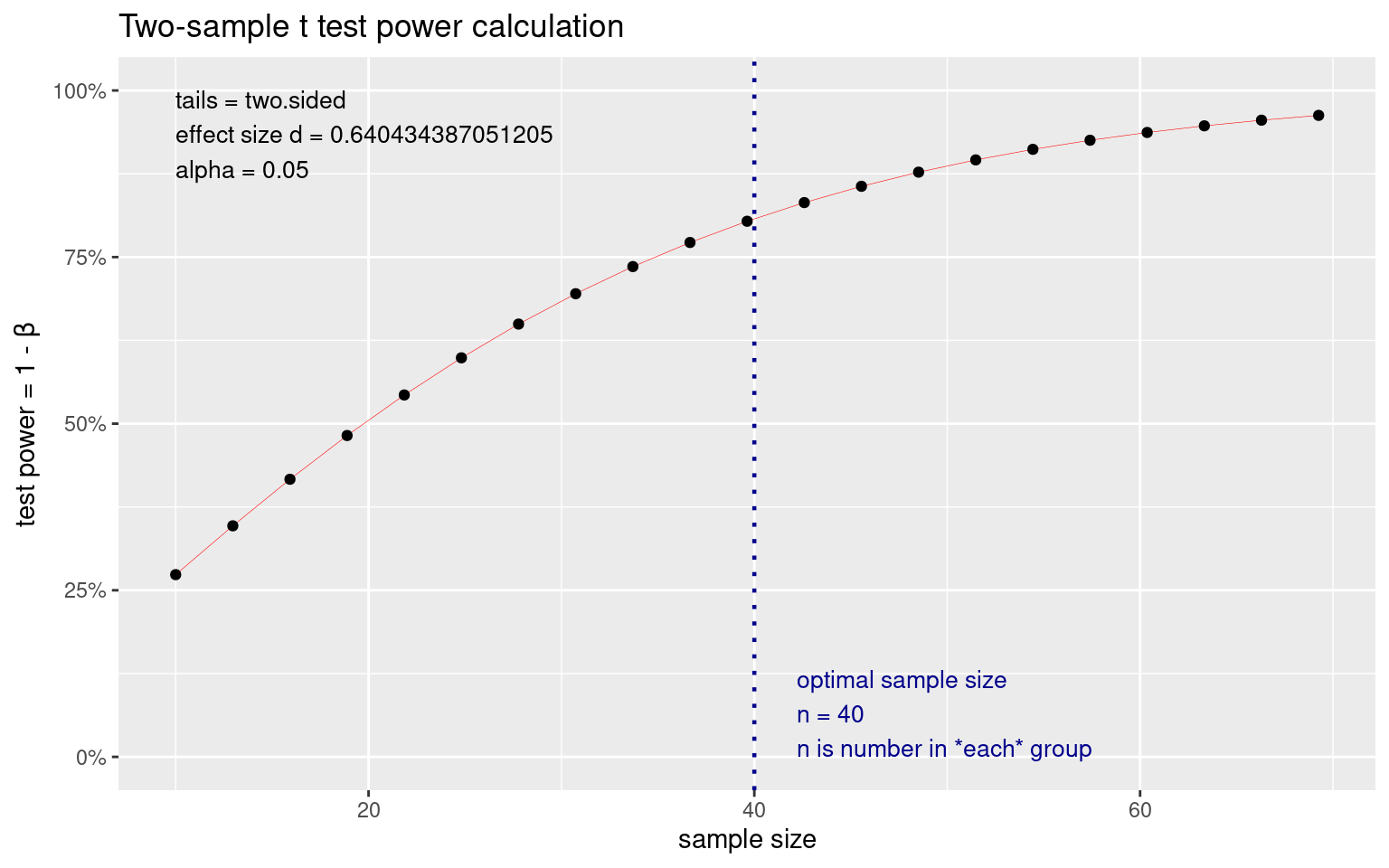 t test power calculation