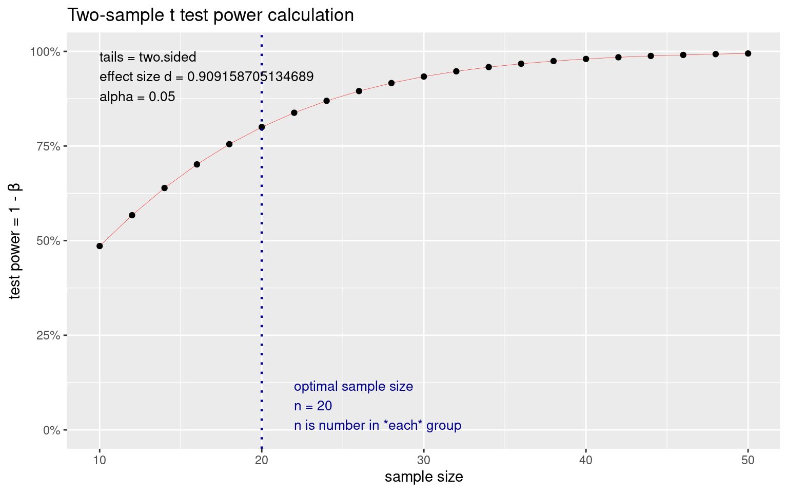 test <- pwr.t.test(sig.level = 0.05, n = 20, power = 0.8)