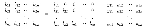 It is not difficult to verify that column j of matrix B is the product of matrix A and column j of matrix Y. Therefore, we can solve one column of Y at a time. This is shown below: