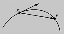 Consider a fixed point X and a moving point P on a curve. As point P moves toward X, the vector from X to P approaches the tangent vector at X. The line that contains the tangent vector is the tangent line.