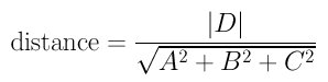 where D is the constant term. Similar to the line case, the distance