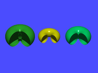 If R is greater than r, the result is a commonly seen torus as shown in the middle of the following figure.