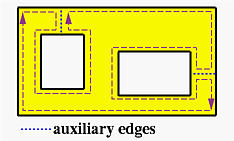 Perhaps the oldest data structure for a B-rep is Baumgart's winged-edge data structure. It is quite different from that of a wireframe model, because the winged-edge data structure uses edges to keep track almost everything. In what follows, we shall assume there is no holes in each face and later extend it to cope with holes. Moreover, we shall assume edges and faces are line segments and polygons. Topologically, one can always stretch curvilinear edges and faces so that they become flat without changing the relationships among them.