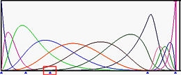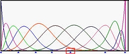 The figures below show the basis functions of degree 5 where the left end and right end knots have multiplicity 6, while all knots in between are simple (Figure (a))). Figure (b) is the result of moving u5 to u6. Those basis functions ended at u6 have fewer knot spans on which they are non-zero. Then, u4 and then u3 are moved to u6, making u6 a knot of multiplicity 4 (Figure (c) and (d). Figure (e) shows the result after moving u2 to u6, creating a knot of multiplicity 5.