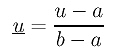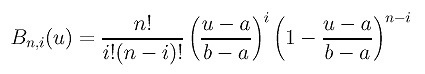 Sometimes the domain of a Bézier curve is [a,b] rather than [0,1]. Thus, a change of variable is required. What we should do is simply converting a u in [a,b] to a new u in [0,1] and using this u in the basis functions. Converting u to [0,1] can be done as follows: