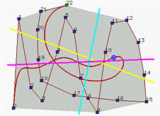 So, what is the meaning of this property? It tells us that the complexity (i.e., turning and twisting) of the curve is no more complex than the control polyline. In other words, the control polyline twists and turns more frequently than the Bézier curve does, because an arbitrary line hits the control polyline more often than it hits the curve. Take a look at the above figure,the control polyline is more complex than the curve it defines.