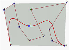 The following figure shows an example. The point shown corresponds to u = 0.5. It is clear that the last line segment of a de Casteljau net is tangent to C(0.5).