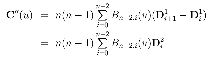 Applying the derivative formula to the above Bézier curve yields the following, which gives the second derivative of the original Bézier curve: