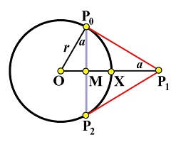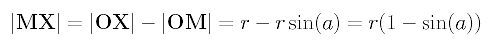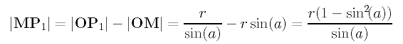 From right triangle OP0P1, we have OP1 = r/sin(a), and, hence MP1 can be computed as follows: