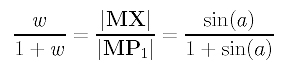 Now, we can compute w/(1+w) using |MX|/|MP1| and obtain the following result: