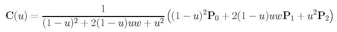 Since we only need one point, which is affected by the weight of control point P1, we can use a rational Bézier curve with three control points P0, P1 and P2 with weights 1, w and 1, respectively. The weight assigned to control point P1 will control the position of the extra point. Since we use rational Bézier curve of degree 2, the coefficients are the following: