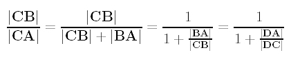 Since |CA| = |CB| + |BA|, we can compute |CB|/|CA| as follows: