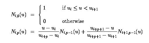 In the above figures, since the multiplicity of knot u6 are 1 (simple), 2, 3, 4 and 5, the numbers of non-zero basis function at u6 are 5, 4, 3, 2 and 1.
