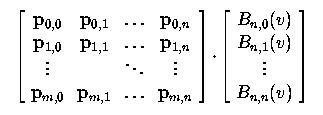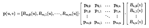 In this matrix form, the result is a column matrix of m+1 entries. If we further make the basis functions of the u-direction Bézier curve into a row matrix of m+1 entries: