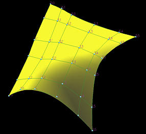 The following figure shows a B-spline surface defined by 6 rows and 6