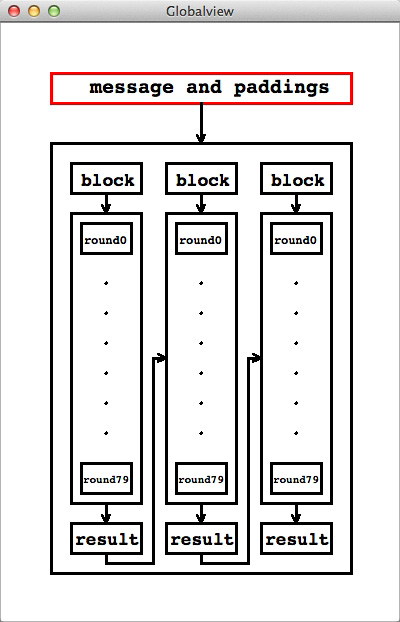 This subpage demonstrates the general overview of the SHA-512 algorithm workflow.