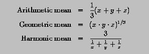 Given three real numbers, its arithmetic mean (average), geometric mean and harmonic mean are defined as follows: