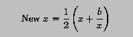 With b and a guess value x, a new guess value is computed with the above formula. This process continues until the new guess value and the current guess value are very close. In this case, either one can be considered as an approximation of the square root of b.