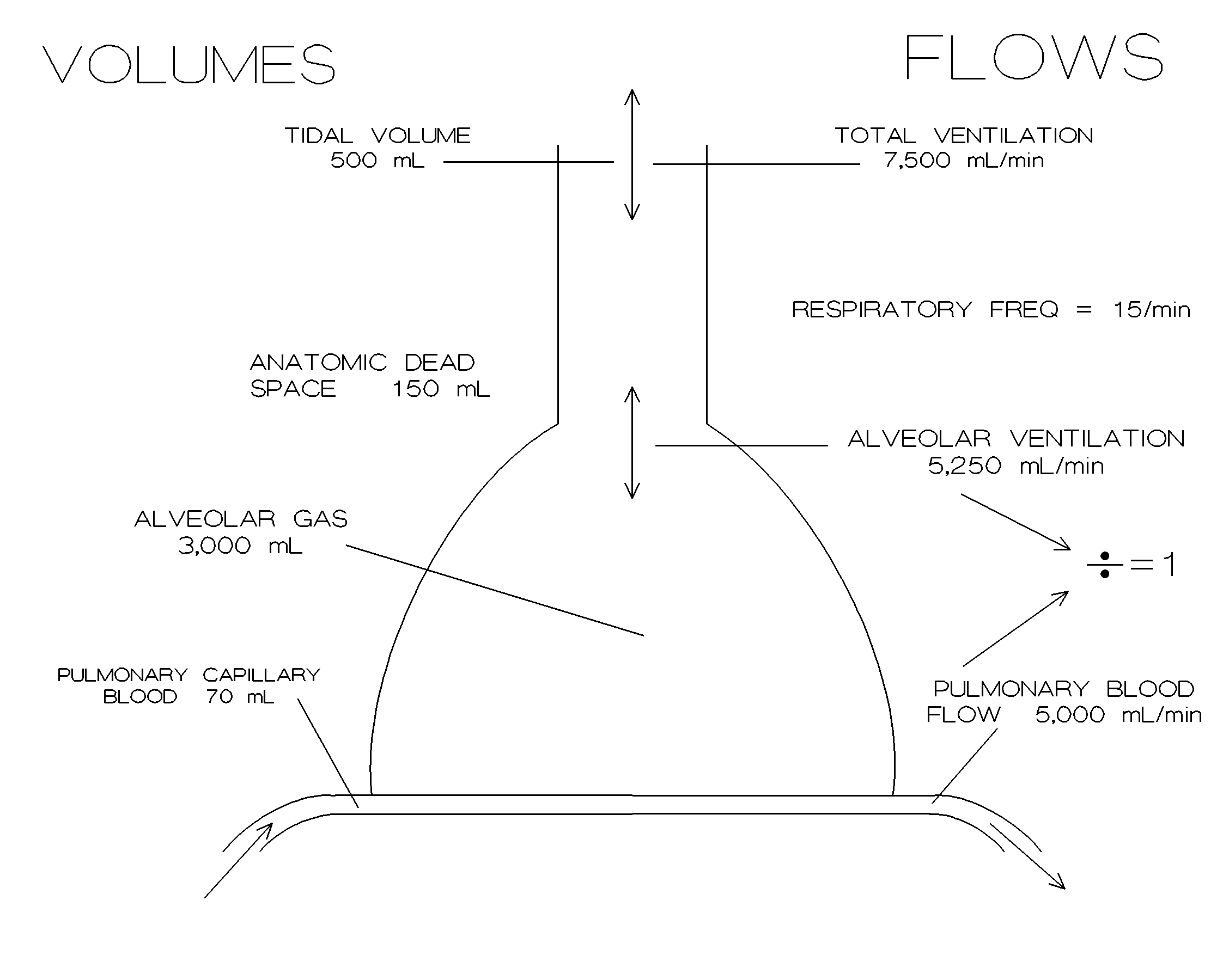 Figure 1. Diagram of lung showing typical volumes and air flow.