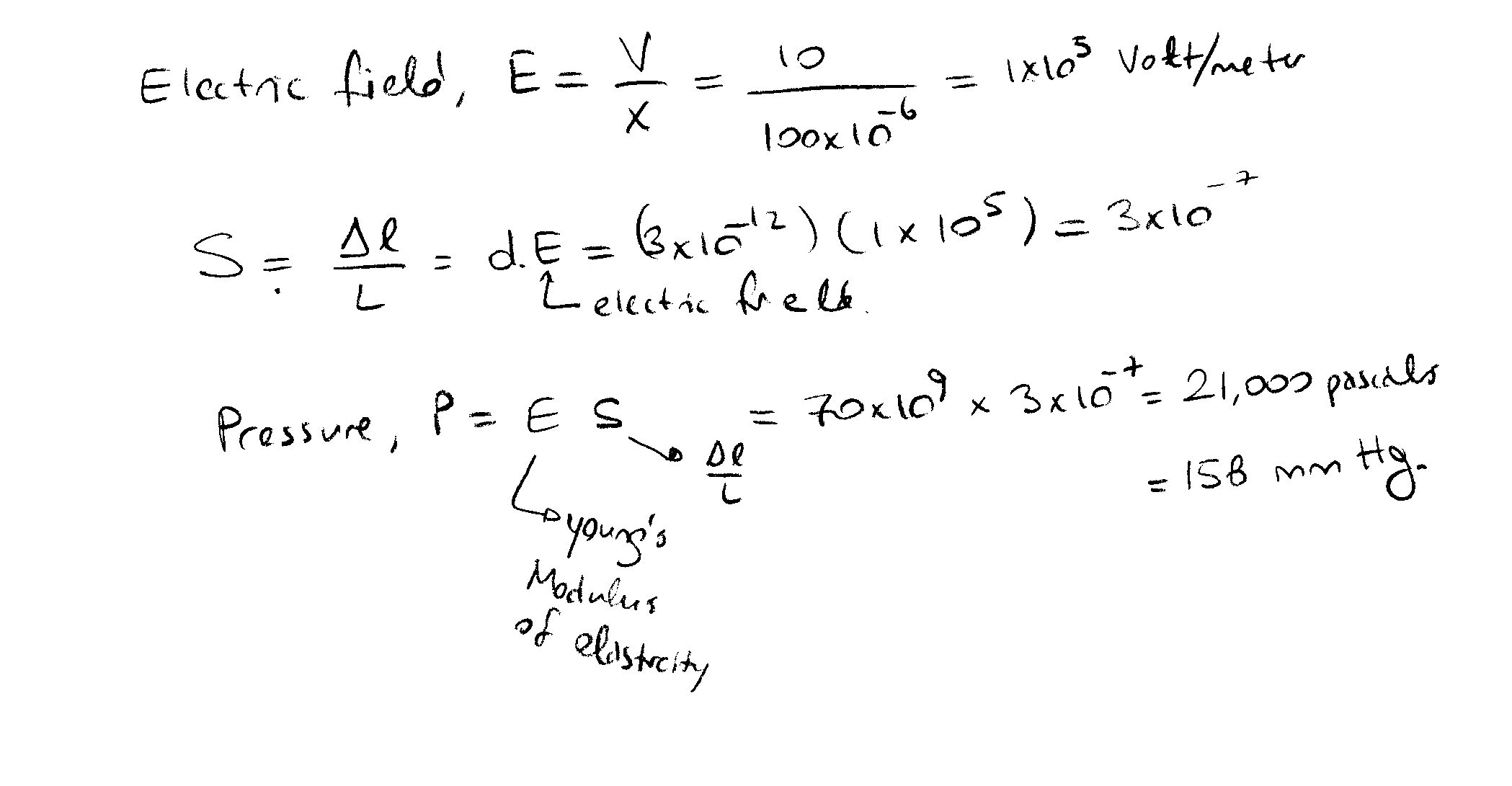 m -meter section of the crystal, determine the produced pressure by a crystal having a Young's Modulus of Elasticity of 70 GigaPascals.