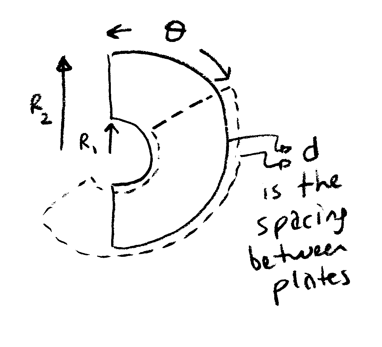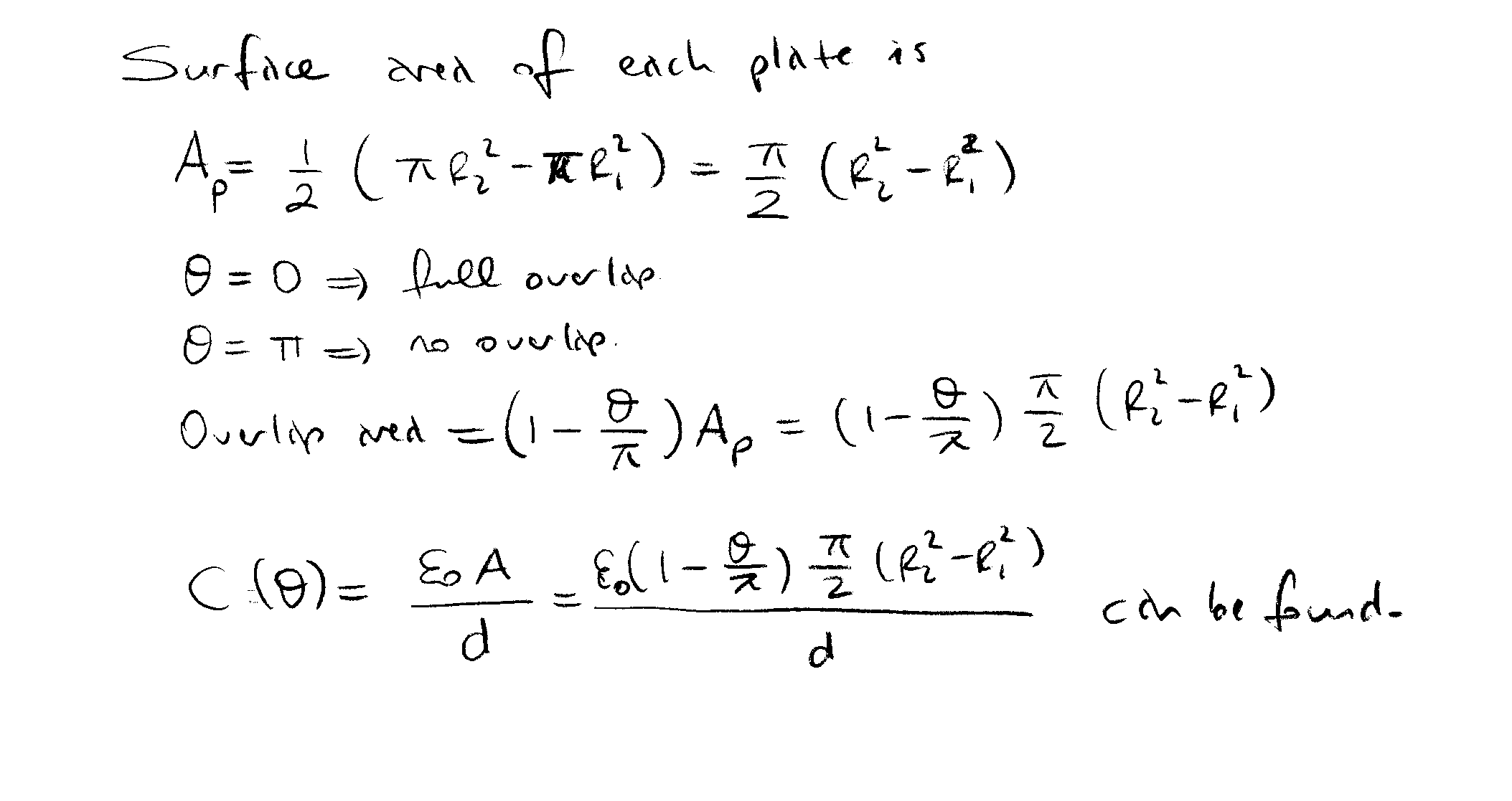 Derive the equations relating the measurement angle q to capacitance on a capacitive goniometer as shown below.
