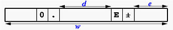 - E is for REAL numbers in exponential forms.