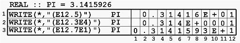 In the following table, the WRITE statements use different E