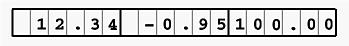 The edit descriptor is 3F6.2 and the format is equivalent to (F6.2,F6.2,F6.2) because the repetition indicator is 3. Therefore, each of these three REAL variables is printed with F6.2. Based on the discussion earlier, the result is the following:REAL :: a = 12.34, b = -0.945, c = 100.0 WRITE(*,"(3F6.2)") a, b, c
