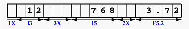 It should generate the following output:CHARACTER(LEN=30) :: FMT = "(1X,I3,3X,I5,2X,F5.2)" INTEGER :: a = 12 INTEGER :: b = 768 REAL :: c = 3.715 READ(*,FMT) a, b, c
