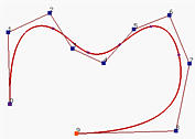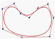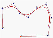 The above figures, from left to right, show open, clamped and closed B-spline curves of degree 4 with the same set of control points. An open B-spline/NURBS curve does not pass though the first and the last control points. This system displays an open B-spline/NURBS curve with uniformly spaced knots. A clamped B-spline/NURBS curve is tangent to the first and last legs at the first and last control points, respectively. This system displays a B-spline/NURBS curve with the first p+1 knots and the last p+1 knots clamped to 0 and 1, respectively. All internal knots are uniformly spaced. For a closed B-spline/NURBS curve, the knots are still uniformly spaced; but some knots at both ends are fixed and cannot be modified.
