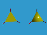 The above left triangle is generated with vertices < 1, 0, 0 >, < 0, 1, 0 > and < 0, 0, 1 >: