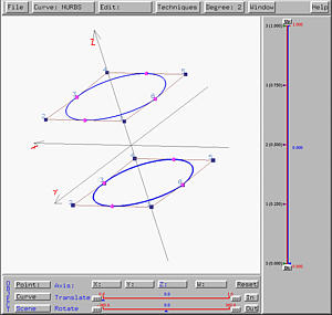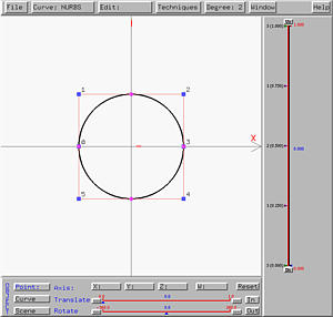 Many commonly seen and useful surfaces are ruled surfaces. Here are a few examples. Since circles will be frequently used, in case you forgot how to design a circle, click here to download a file (circle7.dat) in which a circle is defined as a NURBS curve of degree 2 using seven control points:
