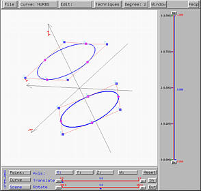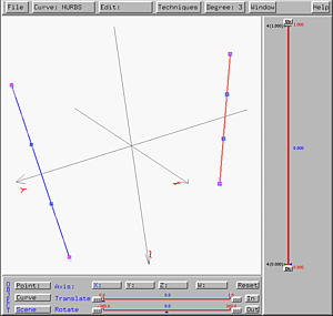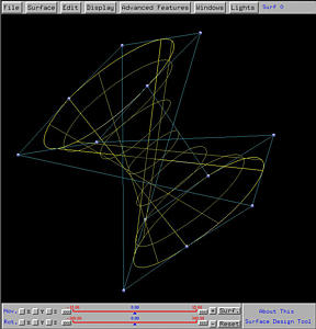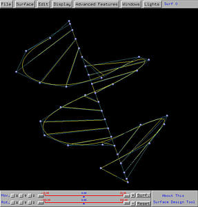 Note that these two curves do not have to be of the same degree with the same number of control points and the same number of knots. Note also that before sending the created surface to the surface system, the curve system will modify the two curves. As a result, the number of control points and the number of knots, and their positions shown in the surface system, in general, will not be the same as those in your original design.