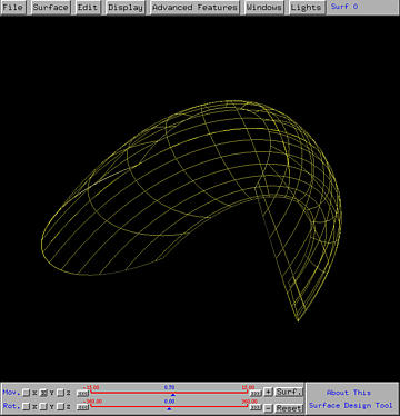 To perform a translation or a rotation to the scene or to the surface, you must select the object to be transformed and a reference coordinate axis. For example, to translate the scene in the y-direction, one must click on the Surf. button to make Scene to appear. However, if Scene is shown, the transformation will be applied to the scene. Then, select Y and drag the Move slider. This will cause the whole scene moved in the y direction. You can also click on button >>> (resp., <<<) to increase (resp., decrease) the amount of translation and rotation.