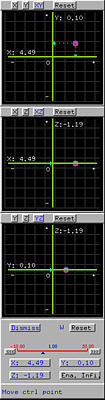The Reset buttons on the top of each small window reset the control point back to the position before this move, and the Dismiss button closes this window. Note that resetting may not be very accurate due to the fact that some mouse activities may not be caught precisely.