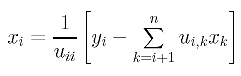 and solving for xn-1 yields xn-1 = (yn-1- un-1,nxn)/ un-1,n-1. Now, we have xn and xn-1. Plugging them into equation n-2
