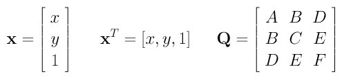 where (x, y, z) is the coordinates of a point. This form translates the general second polynomial of a quadric to the following matrix form: