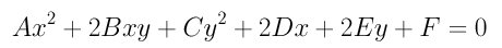In the above polynomial, the coefficients of xy, x and y are 2B, 2D and 2E, respectively. This polynomial has six coefficients; however, dividing it with a non-zero coefficient would reduce six to five. Thus, in general, five conditions can uniquely determine a conic. In linear algebra, you perhaps have learned the way of reducing the above polynomial to a normal form using eigenvalues and eigenvectors.