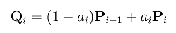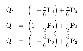 Fortunately, the positions of new control points Qi's are easy to compute. The formula for computing the new control point Qi on leg Pi-1Pi is the following: