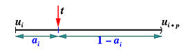 Let us take a look at a geometric interpretation of ai. From its definition, ai:1-ai is the ratio of dividing interval [ui, ui+p) by the value of t as shown below: