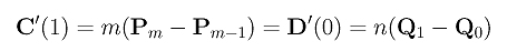 From these definitions, we know that the first curve C1(u) is defined by control points P1, P2, ..., Pn, that the second curve C2(u) is defined by control points P0, P1, ..., Pn-1, and that the derivative is: