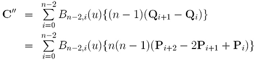 Applying the derivative formula to the above Bézier curve yields the following, which gives the second derivative of the original Bézier curve: