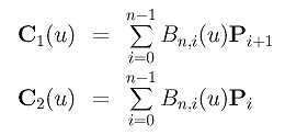 Thus, the derivative of a Bézier curve is the difference of two Bézier curves of degree n-1. For simplicity, let these two curves be C1(u) and C2(u):