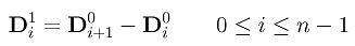 To express higher derivative concisely, we shall use finite difference. Let us define Di0 to be control point Pi for 0 <= i <= n. Then, we define the first level difference Di1 to be the difference of the previous level: