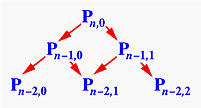 More precisely, entry Pi,j is the sum of (1-u)Pi-1,j (upper-left corner) and uPi-1,j+1 (lower-left corner). The final result (i.e., the point on the curve) is Pn,0. Based on this idea, one may immediately come up with the following recursive procedure: