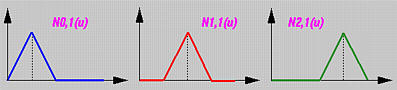 N1,1(u) = (u - u1) / (u2 - u1) N1,0(u) + (u3 - u) / (u3 - u2) N2,0(u)Plugging u1 = u2 = 0 and u3 = 0.3 into this equation yields the following: