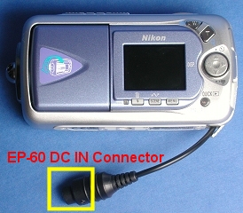 After the cover of the battery chamber is closed, the EP-60 DC IN Connector extends out as shown below.