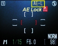 When AE Lock is in effect, AE-L is shown in the upper edge of the monitor.