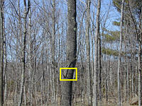 The trunk near the center marked by a yellow rectangle has fine texture which is good for testing image quality. To compare, a photo is taken for each resolution and enlarged to 1600×1200 without sharpening. Then, the size of the indicated area is doubled. The center part of the photo is used because a lens is always sharper in the center than near the corners. As a result, the quality of the lens will not affect the the comparison of image compression. The following is the results.